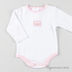 Трикотажное боди прямого силуэта с длинным рукавом. Застежка на две пуговицы на спинке. Классическая боди-застежка на кнопки. Декоративные нашивки и вышивка.