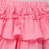 Яркий летний комплект состоит из: футболки с круглым вырезом, короткими рукавами, сзади застегивается на пуговицы, полочка украшена оригинальным принтом. Юбочка с многослойными рюшами на резинке.