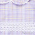 Расклешеное платье с отложным воротничком застегивается на две пуговицы на спинке. Короткий рукав "крылышко". Изделие декорировано кружевной тесьмой.