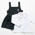 В комплект входят: сарафан на пуговицах с кармашками, блузка с кружевным воротником.