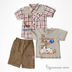 Детали: классического кроя футболка, стильные шорты с резинкой на поясе, шлевки для ремня, два прорезных кармашка, накладные кармашки на брючинах, рубашка с застежкой на пуговицах, отложной воротник с острыми углами на небольшой стойке, короткие рукава, оригинальный принт на полочке