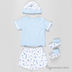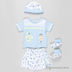 Комплект состоит из шорт, футболки, шапки и пинеток.