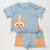 Повседневный комплект для мальчика состоит из: футболки с круглым вырезом и короткими рукавами, полочка украшена нашивкой "рыбка". Шортики на резинке с двумя втачными кармашками и оригинальной вышивкой.