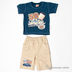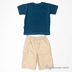 Детали: пояс на резинке, шлевки для ремня, два прорезных кармашка, один небольшой накладной карман с клапаном, стильный принт на полочке, футболка с круглым вырезом горловины, короткие рукава