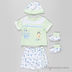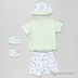 Комплект состоит из шорт, футболки, шапки и пинеток.