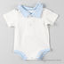 Трикотажное боди прямого силуэта с коротким рукавом и отложным воротом-стойкой. Застежка на две кнопки на полочке. Классическая боди-застежка на кнопки.