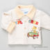 Нежный утепленный комплект из приятного на ощупь материала. Куртка с отложным воротом, застегивается на пуговицы, длинные рукава, полочка украшена веселыми нашивками. Футболка с длинными рукавами и круглым вырезом. Брюки с отворотами, на резинке, украшены нашивкой.