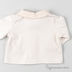 Трикотажная кофта прямого силуэта с отложным воротом застегивается на кнопки. Длинный рукав посажен на манжету. Полочка декорирована нашивками.