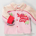 Нежный утепленный комплект из приятного на ощупь, вельветового материала. Куртка с отложным воротом, застегивается на кнопки, длинные рукава, полочка украшена веселыми нашивками. Футболка с длинными рукавами и круглым вырезом. Брюки с отворотами, на резинке, сбоку накладной кармашек.