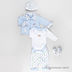 Комплект состоит из кофты, боди, брюк, шапочки и пинеток.