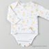 Трикотажное боди прямого силуэта с длинным рукавом. Классическая боди-застежка на кнопки. Декоративные принты.