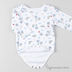 Трикотажное боди прямого силуэта с длинным рукавом. Классическая боди-застежка на кнопки. Декоративные принты.