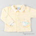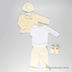 Комплект состоит из кофты, боди, брюк, шапочки и пинеток.