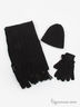 Стильный женский комплект из шерстяного трикотажа. Состоит из шапки, шарфа и перчаток, декорированных оригинальной вязкой и аппликациями. Согреет Вас в прохладную погоду и создаст неповторимый образ.