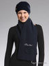 Стильный женский комплект из шерстяного трикотажа. Состоит из шапки и шарфа, декорированных нашивками. Согреет Вас в прохладную погоду и создаст неповторимый образ.