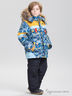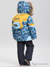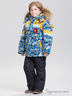 Куртка прямого силуэта. Центральная застежка на тесьму-молнию, с наружней втачной ветрозащитной планкой. Воротник стойка трикотажной отделкой. Рукав втачной, регулируемый по длине отворотными манжетами с внутренними ветрозащитными трикотажными напульсниками. На нижней части переда боковые прорезные карманы. Капюшон съемный на молнии. Имеется кулиса для регулировки объема. Датчик контроля температуры. Брюки –полукомбинезон с регулируемыми по длине бретелями. Верхняя часть брюк застегивается на молнию. В верхней части брюк два врезных кармана. Пояс притачной с резинкой. Низ брюк с отворотной манжетой, регулируемой по длине и ширине и со снегозащитной муфтой. Нашивки “бетмена”на груди. Принт куртки выполнен в стиле “бетмена”. Детский рюкзачок.