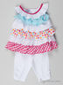 Детали: топ с округлым вырезом горловины, с застежкой на молнию, декорирован многорядными оборками; леггинсы на резинке