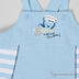 Комплект для мальчика, (футболка и комбинезон). Футболка с округлым вырезом горловины и застежкой на кнопки. Комбинезон с застежкой на пуговицы и кнопки, украшен нашивками и набивным принтом.