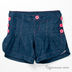 Короткие шорты свободного кроя застегиваются на молнию и пуговицы. В пояс вшита резинка. Сзади один карман. Большие разрезы по бокам изделия. Рядом с боковым швом спереди нашиты декоративные пуговицы.