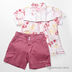 Комплект: блузка и шорты для девочки. Блузка из легкой хлопковой ткани белая с нежным рисунком застегивается на перламутровые пуговицы. Шорты из плотной хлопковой ткани темно-розового цвета.