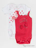 Комплект из двух боди для девочки. Выполнен из тонкого эластичного трикотажа. Боди белого цвета с коротким рукавом и округлым вырезом. Боди красного цвета на тонких бретелях с вырезом каре. Оба боди застегиваются на кнопки в пройме и декорированы принтом на полочке.