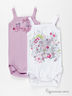 Комплект из двух боди для девочки. Выполнен из тонкого эластичного трикотажа. Окантовка выреза каре переходит в тонкие бретели, застежка на кнопки в пройме. Декорированы принтом на полочке.