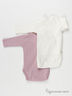 Комплект для девочки состоит из двух боди с длинным рукавом. Выполнен из тонкого эластичного трикотажа. V-образный вырез горловины, застежка на кнопки на полочке и в пройме. Декорированы принтом.