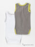 Комплект из двух боди для мальчика. Выполнен из тонкого эластичного трикотажа. Округлый вырез горловины, застежка на кнопки в пройме. Декорированы контрастной окантовкой и принтом на полочках.