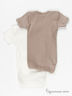 Комплект из двух боди для мальчика. Выполнен из тонкого эластичного трикотажа. Округлый вырез горловины, короткий рукав, застежка на кнопки в пройме. Молочное боди с контрастной окантовкой декорировано принтом на полочке, серо-коричневое с ярким рисунком на полочке.