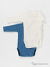 Комплект из двух боди с длинным рукавом для мальчика. V-образный вырез горловины, застежка на кнопки на полочке и в пройме. Декорированы принтами на полочке.