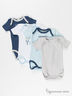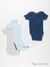 Комплект из четырех боди для мальчика. Выполнен из тонкого эластичного трикотажа. Округлый вырез горловины, короткий рукав, застежка на кнопки в пройме. В комплекте темно-синее, белое и голубое боди, декорированные принтом и контрастной окантовкой и светло-серое однотонное боди.