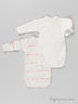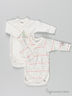 Комплект из двух боди для ребенка. Выполнен из тонкого эластичного трикотажа. V-образный вырез горловины, длинный рукав, застежка на кнопки на полочке и в пройме. Декорированы оригинальным принтом.
