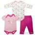 Мягкий трикотажный комплект для девочки состоит из боди с коротким рукавом, боди с длинным рукавом и штанишек. Дополните повседневный гардероб Вашего малыша теплыми и уютными вещами!