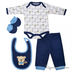 Мягкий трикотажный комплект для мальчика состоит из боди с длинным рукавом, слюнявчика, пинеток и штанишек. Дополните повседневный гардероб Вашего малыша теплыми и уютными вещами!