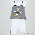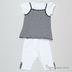 Детали: футболка - круглый вырез; короткий рукав; застегивается на кнопки сзади; майка - тонкие бретели; принт - полоска; на полочке аппликация со стразами; леггинсы - посажены на резинку; низ изделия дополнен рюшами
