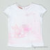 Футболка прямого силуэта с округлым вырезом горловины и коротким рукавом. Застежка на кнопки на спинке. Полочка украшена нашивками, вышивкой и декоративными элементами.