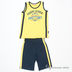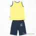 Детали: майка - окантовка круглого выреза и пройм в виде контрастной трикотажной ленты; декорирована контрастными вставками и аппликацией на полочке; шорты - пояс на резинке дополнен кулиской; сзади накладной карман с аппликацией; контрастные лампасы