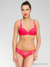 Комплект нижнего белья: бюстгальтер и трусы. Привлекательный бюстгальтер на удобных регулируемых бретельках. Чашечки хорошо держат форму, подчеркивая достоинства Вашей фигуры. Трусы-стринги средней посадки. Изделия выполнены в яркой расцветке. Комфортный вариант на каждый день.