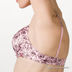 Стильный комплект розового цвета. Бюстгальтер push-up с гелевым наполнителем декорирован цветной аппликацией на на нижней части чашек, между которыми стильный элемент декора в виде серебряного ключика. Трусики-слип с сиреневым бантиком спереди.