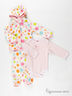 Флисовая толстовка прямого силуэта с капюшоном и длинным рукавом застегивается на кнопки на полочке. Капюшон с хлопковым подкладом украшен пришитыми ушками. Изделие декорировано рисунками.