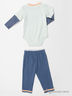 Боди с длинным рукавом и округлым вырезом горловины. Эффект двойки. Застежка на две кнопки на левом плечике и классическая боди-застежка на кнопки. Полочка украшена нашивками.