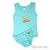 Приталенная майка на лямках украшена аппликацией с любимыми героями мультфильма.