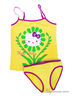 Майка прямого силуэта на бретелях и трусики слип украшены аппликациями с любимыми героями мультфильма.