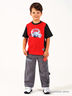 Футболка прямого кроя с коротким рукавом украшена декоративной аппликацией.