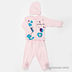 Выполненый из мягкого не эластичного трикотажа средней плотности, стильный комплект распашонка на кнопках украшенная оригинальным принтом длинный рукав, круглый вырез с трикотажной бейкой, шапочка, ползунки на резинке.