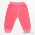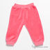 Велюровые брючки прямого кроя. В трикотажный пояс вставлена резинка. Брючины посажены на трикотажные манжеты.