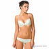 Утонченный дизайн комплекта делает образ нежным и романтичным. Бюстгальтер пуш-ап (гель) c чашечками на косточках с тонкой ажурной оборкой по периметру. Спереди декоративная капелька в тон белья. Трусы стринги впереди декорированы ажуром по краям.