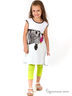 Туника с оригинальным принтом на груди в виде зебры, украшенной стразами без рукавов. Лосины из гладкого трикотажа украшены ленточкой с логотипом. Пояс на резинке.