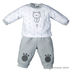 Детали: джемпер застегивается на пуговицы на спине, длинный прямой рукав. Брюки на плотной резинке. Изделие декорировано аппликацией.