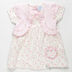 Платье расклешенного силуэта с эффектом двойки застегивается на три пуговицы на спинке. Изделие украшено принтами, вышивкой и нашивкой.